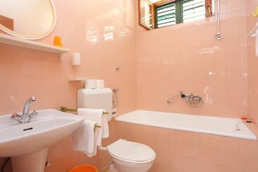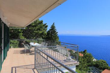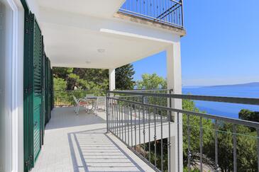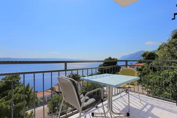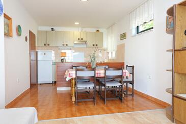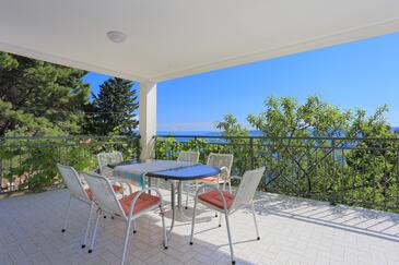 Ferienwohnung bietet Platz für 7 Gäste. Die Betten sind in Schlafzimmern, die es 3 gibt, und in Wohnzimmer, innerhalb einer Gesamtfläche von 88m2, angeordnet. Die Gäste haben eine eigene Terrasse zur Verfügung, auf der sie in warmen Sommernächten genießen können. Das Apartment bietet Meerblick. Es ist erlaubt, Speisen auf dem Gemeinschafts-Grill vorzubereiten. Eingang in die Unterkunftseinheit ist nicht mit einer Tür von anderen Räumen des Objektes getrennt.