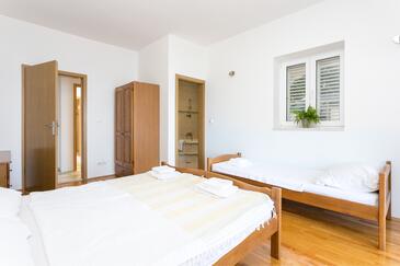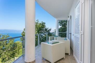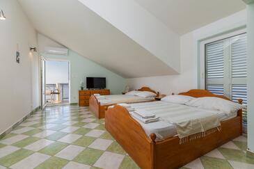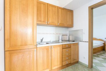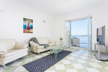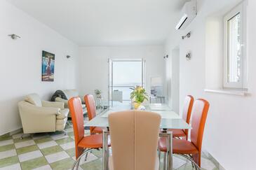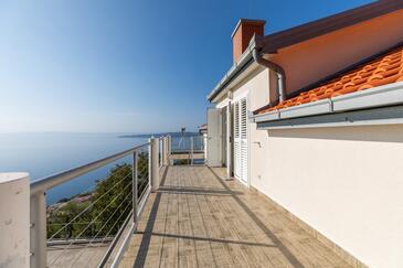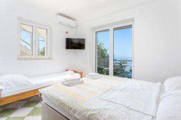 Ferienwohnung bietet Platz für 7 Gäste. Die Betten sind in Schlafzimmern, die es 2 gibt, und in Wohnzimmer, innerhalb einer Gesamtfläche von 77m2, angeordnet. Die Gäste haben eine eigene Terrasse zur Verfügung, auf der sie in warmen Sommernächten genießen können. Das Apartment bietet Meerblick. Es ist erlaubt, Speisen auf dem Gemeinschafts-Grill vorzubereiten. Während ihres Aufenthalts können Gäste das gemeinsam zur Nutzung stehende Schwimmbad benutzen.