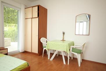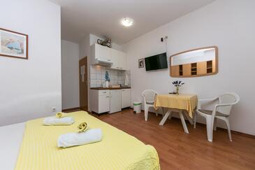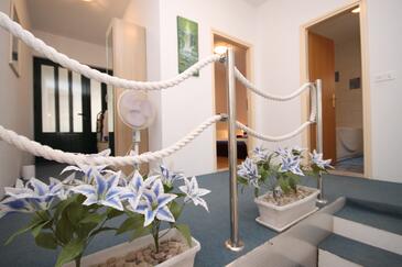 Ferienwohnung bietet Platz für 6 Gäste. Die Betten sind in Schlafzimmern, die es 1 gibt, und in Wohnzimmer, innerhalb einer Gesamtfläche von 67m2, angeordnet. Die Gäste haben eine eigene Terrasse zur Verfügung, auf der sie in warmen Sommernächten genießen können. Das Apartment bietet Meerblick. Es ist erlaubt, Speisen auf dem Gemeinschafts-Grill vorzubereiten. In der Unterkunftseinheit besteht die Möglichkeit des Mitbringens von Haustieren gegen Aufpreis.