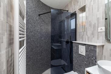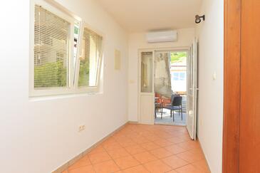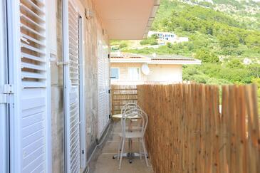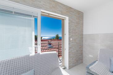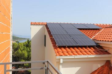 Ferienwohnung bietet Platz für 8 Gäste. Die Betten sind in Schlafzimmern, die es 2 gibt, und in Wohnzimmer, innerhalb einer Gesamtfläche von 100m2, angeordnet. Die Gäste haben eine eigene Terrasse zur Verfügung, auf der sie in warmen Sommernächten genießen können. Das Apartment bietet Meerblick. Es ist erlaubt, Speisen auf dem Gemeinschafts-Grill vorzubereiten.