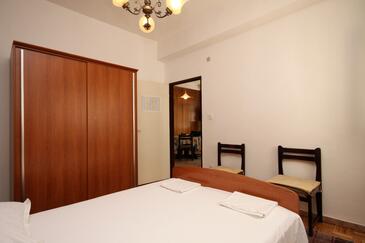 Ferienwohnung bietet Platz für 4 Gäste. Die Betten sind in Schlafzimmern, die es 2 gibt, innerhalb einer Gesamtfläche von 42m2, angeordnet. Die Gäste haben einen eigenen Balkon zur Verfügung, auf der sie in warmen Sommernächten genießen können. Das Apartment bietet Meerblick. Es ist erlaubt, Speisen auf dem Gemeinschafts-Grill vorzubereiten.
