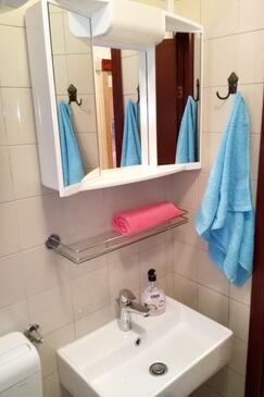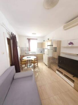 Haus bietet Platz für 6 Gäste. Die Betten sind in Schlafzimmern, die es 3 gibt, innerhalb einer Gesamtfläche von 77m2, angeordnet. Die Gäste haben einen eigenen Balkon zur Verfügung, auf der sie in warmen Sommernächten genießen können. Das Haus bietet Meerblick. Räume der gebuchten Unterkunftseinheit werden nicht in eine Ganze verbunden.