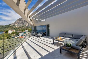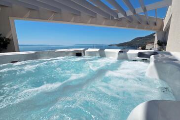 Ferienwohnung bietet Platz für 8 Gäste. Die Betten sind in Schlafzimmern, die es 4 gibt, innerhalb einer Gesamtfläche von 162m2, angeordnet. Die Gäste haben eine eigene Terrasse zur Verfügung, auf der sie in warmen Sommernächten genießen können. Das Apartment bietet Meerblick. Es ist erlaubt, Speisen auf dem Gemeinschafts-Grill vorzubereiten.