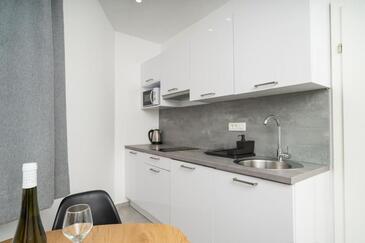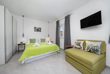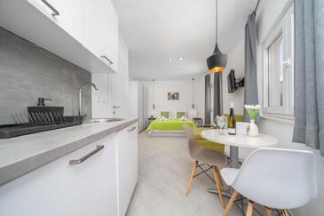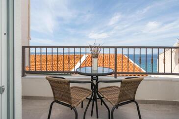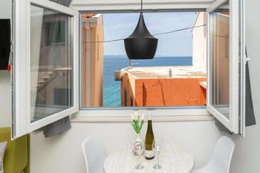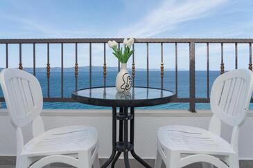 Ferienwohnung bietet Platz für 2 Gäste. Die Betten sind in Schlafzimmern, die es 1 gibt, innerhalb einer Gesamtfläche von 22m2, angeordnet. Die Gäste haben einen eigenen Balkon zur Verfügung, auf der sie in warmen Sommernächten genießen können. Das Apartment bietet Meerblick.