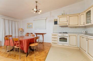 Ferienwohnung bietet Platz für 7 Gäste. Die Betten sind in Schlafzimmern, die es 3 gibt, innerhalb einer Gesamtfläche von 98m2, angeordnet. Die Gäste haben einen eigenen Balkon zur Verfügung, auf der sie in warmen Sommernächten genießen können. Das Apartment bietet Meerblick. In der Unterkunftseinheit besteht die Möglichkeit des Mitbringens von Haustieren gegen Aufpreis.