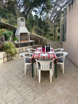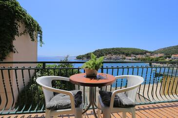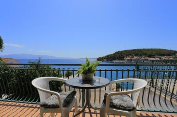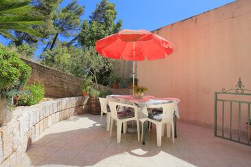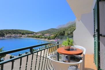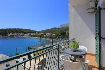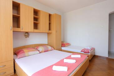 Ferienwohnung bietet Platz für 8 Gäste. Die Betten sind in Schlafzimmern, die es 3 gibt, innerhalb einer Gesamtfläche von 71m2, angeordnet. Die Gäste haben einen eigenen Balkon zur Verfügung, auf der sie in warmen Sommernächten genießen können. Das Apartment bietet Meerblick. Es ist erlaubt, Speisen auf dem Gemeinschafts-Grill vorzubereiten.