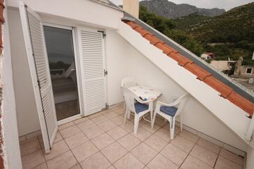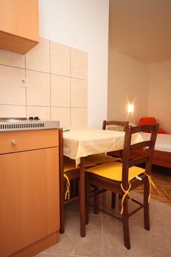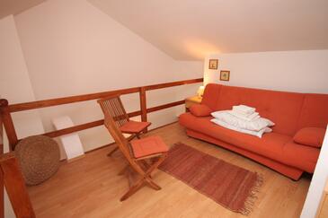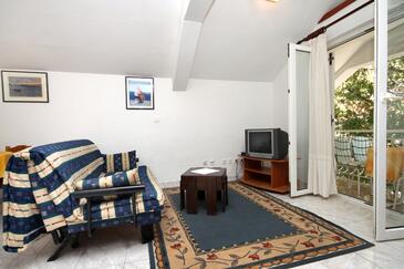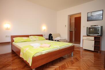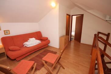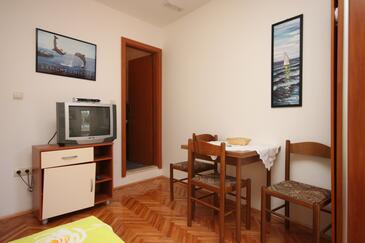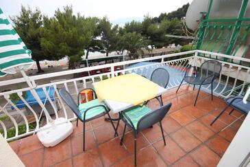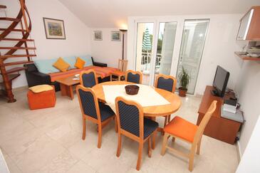 Ferienwohnung bietet Platz für 8 Gäste. Die Betten sind in Schlafzimmern, die es 2 gibt, und in Wohnzimmer, innerhalb einer Gesamtfläche von 72m2, angeordnet. Die Gäste haben eine eigene Terrasse zur Verfügung, auf der sie in warmen Sommernächten genießen können. Das Apartment bietet Meerblick. Es ist erlaubt, Speisen auf dem Gemeinschafts-Grill vorzubereiten. In der Unterkunftseinheit besteht die Möglichkeit des Mitbringens von Haustieren gegen Aufpreis.