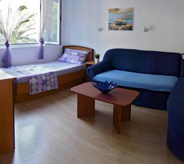 Ferienwohnung bietet Platz für 4 Gäste. Die Betten sind in Schlafzimmern, die es 1 gibt, und in Wohnzimmer, innerhalb einer Gesamtfläche von 38m2, angeordnet. Die Gäste haben einen eigenen Balkon zur Verfügung, auf der sie in warmen Sommernächten genießen können. Das Apartment bietet Meerblick.
