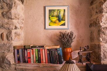 Haus bietet Platz für 5 Gäste. Die Betten sind in Schlafzimmern, die es 2 gibt, und in Wohnzimmer, innerhalb einer Gesamtfläche von 79m2, angeordnet. Die Gäste haben eine eigene Terrasse zur Verfügung, auf der sie in warmen Sommernächten genießen können. Das Haus bietet Meerblick. Es ist erlaubt, Speisen auf dem Gemeinschafts-Grill vorzubereiten. In der gebuchten Unterkunftseinheit zahlt man am Ort ein Depositum ( der Preis ist an der Internetseite angeführt ).