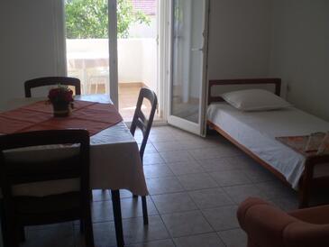 Ferienwohnung bietet Platz für 4 Gäste. Die Betten sind in Schlafzimmern, die es 1 gibt, und in Esszimmer, innerhalb einer Gesamtfläche von 30m2, angeordnet. Die Gäste haben eine eigene Terrasse zur Verfügung, auf der sie in warmen Sommernächten genießen können. Es ist erlaubt, Speisen auf dem Gemeinschafts-Grill vorzubereiten.