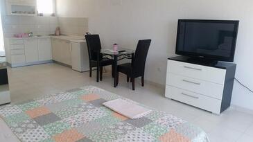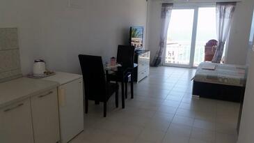 Studio bietet Platz für 2 Gäste. Die Betten sind in Schlafzimmern, die es 1 gibt, innerhalb einer Gesamtfläche von 23m2, angeordnet. Die Gäste haben einen eigenen Balkon zur Verfügung, auf der sie in warmen Sommernächten genießen können. Das Studio-Apartment bietet Meerblick. Es ist erlaubt, Speisen auf dem Gemeinschafts-Grill vorzubereiten.