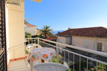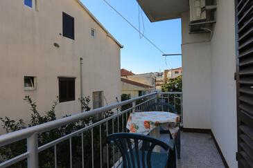 Ferienwohnung bietet Platz für 6 Gäste. Die Betten sind in Schlafzimmern, die es 3 gibt, innerhalb einer Gesamtfläche von 65m2, angeordnet. Die Gäste haben einen eigenen Balkon zur Verfügung, auf der sie in warmen Sommernächten genießen können. Das Apartment bietet Meerblick. Es ist erlaubt, Speisen auf dem Gemeinschafts-Grill vorzubereiten.