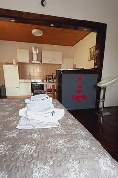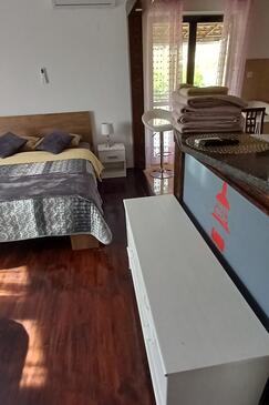 Studio bietet Platz für 2 Gäste. Die Betten sind in Schlafzimmern, die es 1 gibt, innerhalb einer Gesamtfläche von 32m2, angeordnet. Die Gäste haben eine eigene Terrasse zur Verfügung, auf der sie in warmen Sommernächten genießen können. Das Studio-Apartment bietet Meerblick. Es ist erlaubt, Speisen auf dem Gemeinschafts-Grill vorzubereiten.