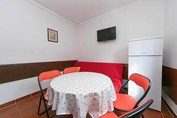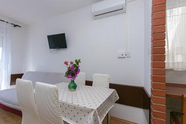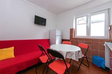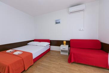 Ferienwohnung bietet Platz für 11 Gäste. Die Betten sind in Schlafzimmern, die es 4 gibt, innerhalb einer Gesamtfläche von 70m2, angeordnet. Die Gäste haben eine eigene Terrasse zur Verfügung, auf der sie in warmen Sommernächten genießen können. Für vollen Genuss und Entspannung gibt es einen privaten Grill für Gäste dieser Unterkunft.