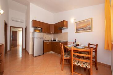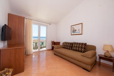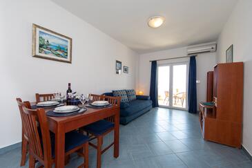 Ferienwohnung bietet Platz für 5 Gäste. Die Betten sind in Schlafzimmern, die es 1 gibt, und in Wohnzimmer, innerhalb einer Gesamtfläche von 42m2, angeordnet. Die Gäste haben eine eigene Terrasse zur Verfügung, auf der sie in warmen Sommernächten genießen können. Das Apartment bietet Meerblick.