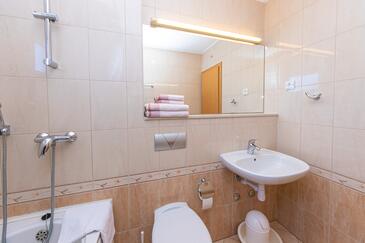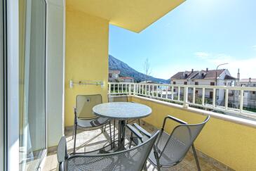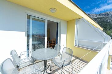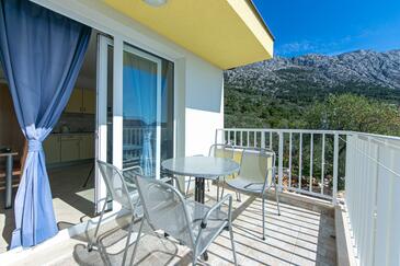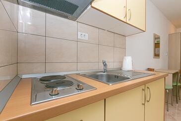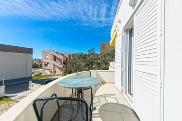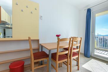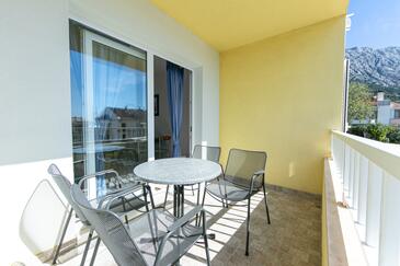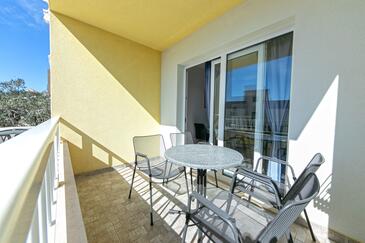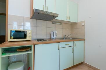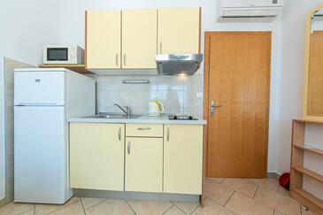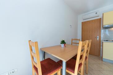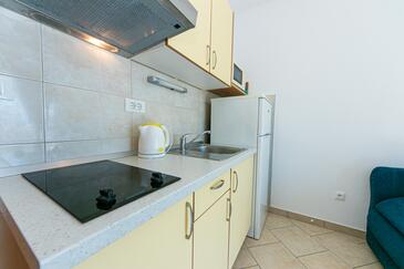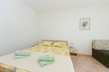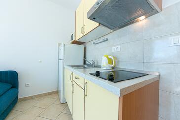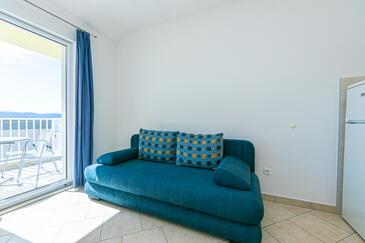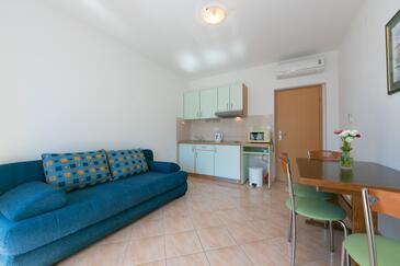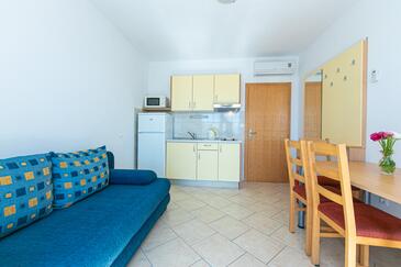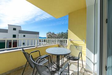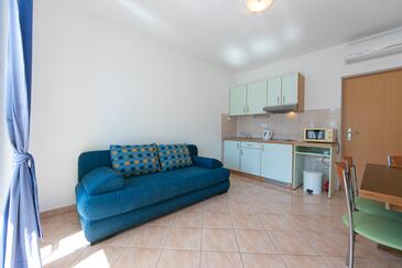 Ferienwohnung bietet Platz für 5 Gäste. Die Betten sind in Schlafzimmern, die es 1 gibt, und in Wohnzimmer, innerhalb einer Gesamtfläche von 30m2, angeordnet. Die Gäste haben einen eigenen Balkon zur Verfügung, auf der sie in warmen Sommernächten genießen können. Das Apartment bietet Meerblick. Es ist erlaubt, Speisen auf dem Gemeinschafts-Grill vorzubereiten.