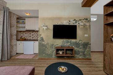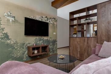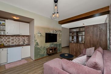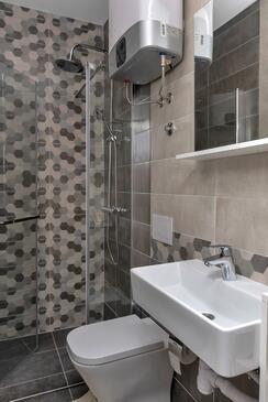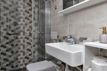 Ferienwohnung bietet Platz für 6 Gäste. Die Betten sind in Schlafzimmern, die es 3 gibt, innerhalb einer Gesamtfläche von 53m2, angeordnet. Die Gäste haben einen eigenen Balkon zur Verfügung, auf der sie in warmen Sommernächten genießen können. Das Apartment bietet Meerblick. Es ist erlaubt, Speisen auf dem Gemeinschafts-Grill vorzubereiten. Räume der gebuchten Unterkunftseinheit werden nicht in eine Ganze verbunden. Unterkunftseinheit hat Räume, die von dem Rest der Einheit abgetrennt werden. In der gebuchten Unterkunftseinheit zahlt man am Ort ein Depositum ( der Preis ist an der Internetseite angeführt ).