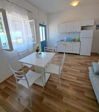 Ferienwohnung bietet Platz für 4 Gäste. Die Betten sind in Schlafzimmern, die es 1 gibt, und in Wohnzimmer, innerhalb einer Gesamtfläche von 30m2, angeordnet. Die Gäste haben eine eigene Terrasse zur Verfügung, auf der sie in warmen Sommernächten genießen können. Das Apartment bietet Meerblick. Es ist erlaubt, Speisen auf dem Gemeinschafts-Grill vorzubereiten. In der Unterkunftseinheit besteht die Möglichkeit des Mitbringens von Haustieren gegen Aufpreis.