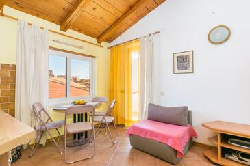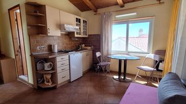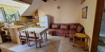 Ferienwohnung bietet Platz für 4 Gäste. Die Betten sind in Schlafzimmern, die es 1 gibt, und in Wohnzimmer, innerhalb einer Gesamtfläche von 40m2, angeordnet. Die Gäste haben eine eigene Terrasse zur Verfügung, auf der sie in warmen Sommernächten genießen können.