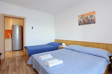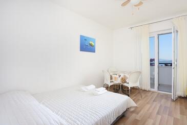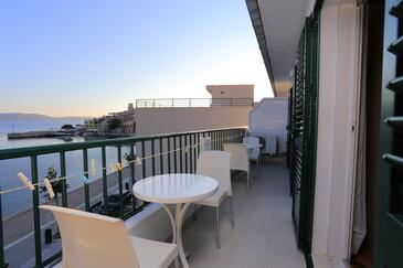 Ferienwohnung bietet Platz für 9 Gäste. Die Betten sind in Schlafzimmern, die es 3 gibt, innerhalb einer Gesamtfläche von 77m2, angeordnet. Die Gäste haben einen eigenen Balkon zur Verfügung, auf der sie in warmen Sommernächten genießen können. Das Apartment bietet Meerblick. Es ist erlaubt, Speisen auf dem Gemeinschafts-Grill vorzubereiten.