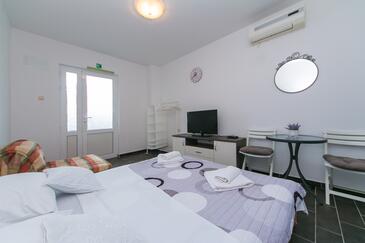 Ferienwohnung bietet Platz für 4 Gäste. Die Betten sind in Schlafzimmern, die es 1 gibt, und in Wohnzimmer, innerhalb einer Gesamtfläche von 26m2, angeordnet. Die Gäste haben einen eigenen Balkon zur Verfügung, auf der sie in warmen Sommernächten genießen können. Es ist erlaubt, Speisen auf dem Gemeinschafts-Grill vorzubereiten.