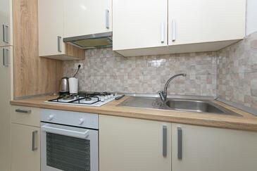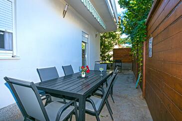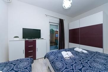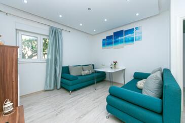 Ferienwohnung bietet Platz für 8 Gäste. Die Betten sind in Schlafzimmern, die es 2 gibt, und in Wohnzimmer, innerhalb einer Gesamtfläche von 50m2, angeordnet. Die Gäste haben eine eigene Terrasse zur Verfügung, auf der sie in warmen Sommernächten genießen können. Es ist erlaubt, Speisen auf dem Gemeinschafts-Grill vorzubereiten. In der Unterkunftseinheit besteht die Möglichkeit des Mitbringens von Haustieren gegen Aufpreis.