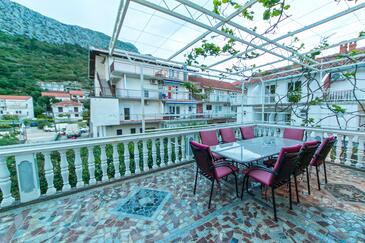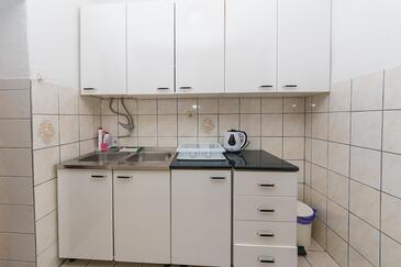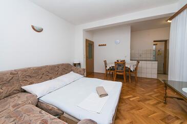 Ferienwohnung bietet Platz für 5 Gäste. Die Betten sind in Schlafzimmern, die es 2 gibt, innerhalb einer Gesamtfläche von 40m2, angeordnet. Die Gäste haben einen eigenen Balkon zur Verfügung, auf der sie in warmen Sommernächten genießen können. Das Apartment bietet Meerblick. Es ist erlaubt, Speisen auf dem Gemeinschafts-Grill vorzubereiten.