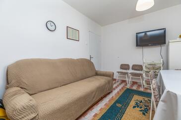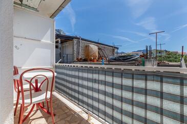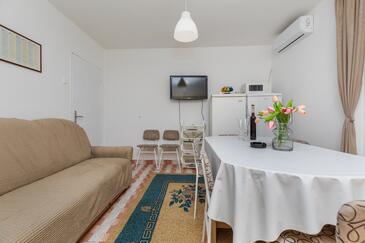Ferienwohnung bietet Platz für 8 Gäste. Die Betten sind in Schlafzimmern, die es 3 gibt, innerhalb einer Gesamtfläche von 67m2, angeordnet. Die Gäste haben einen eigenen Balkon zur Verfügung, auf der sie in warmen Sommernächten genießen können. Das Apartment bietet Meerblick. Es ist erlaubt, Speisen auf dem Gemeinschafts-Grill vorzubereiten.