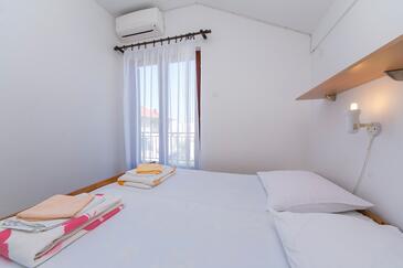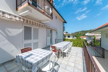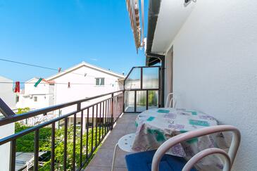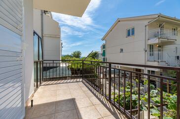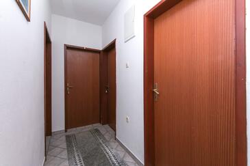 Ferienwohnung bietet Platz für 10 Gäste. Die Betten sind in Schlafzimmern, die es 5 gibt, innerhalb einer Gesamtfläche von 83m2, angeordnet. Die Gäste haben eine eigene Terrasse zur Verfügung, auf der sie in warmen Sommernächten genießen können. Es ist erlaubt, Speisen auf dem Gemeinschafts-Grill vorzubereiten.