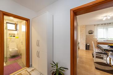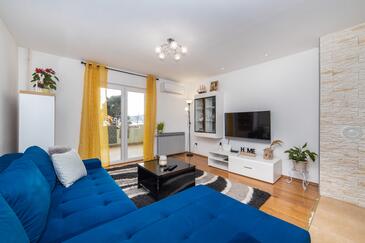 Ferienwohnung bietet Platz für 6 Gäste. Die Betten sind in Schlafzimmern, die es 2 gibt, und in Wohnzimmer, innerhalb einer Gesamtfläche von 70m2, angeordnet. Die Gäste haben eine eigene Terrasse zur Verfügung, auf der sie in warmen Sommernächten genießen können. Das Apartment bietet Meerblick. Es ist erlaubt, Speisen auf dem Gemeinschafts-Grill vorzubereiten.