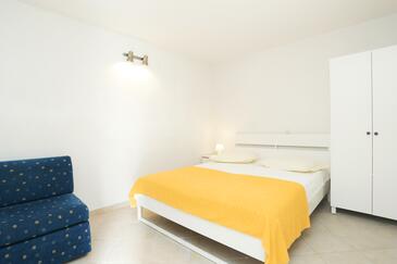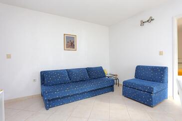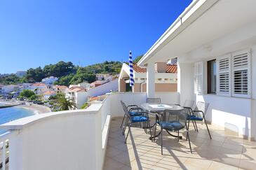 Ferienwohnung bietet Platz für 6 Gäste. Die Betten sind in Schlafzimmern, die es 2 gibt, und in Wohnzimmer, innerhalb einer Gesamtfläche von 67m2, angeordnet. Die Gäste haben eine eigene Terrasse zur Verfügung, auf der sie in warmen Sommernächten genießen können. Das Apartment bietet Meerblick. Es ist erlaubt, Speisen auf dem Gemeinschafts-Grill vorzubereiten.