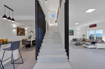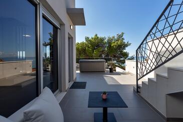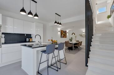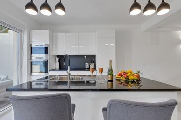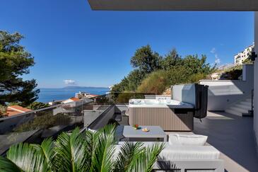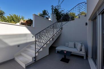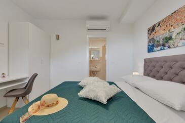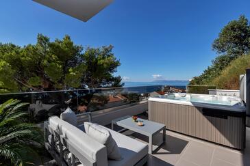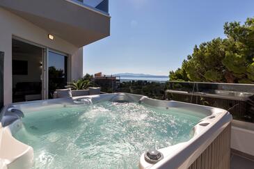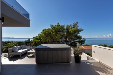 Ferienwohnung bietet Platz für 6 Gäste. Die Betten sind in Schlafzimmern, die es 3 gibt, innerhalb einer Gesamtfläche von 134m2, angeordnet. Die Gäste haben eine eigene Terrasse zur Verfügung, auf der sie in warmen Sommernächten genießen können. Das Apartment bietet Meerblick. Es ist erlaubt, Speisen auf dem Gemeinschafts-Grill vorzubereiten. In der gebuchten Unterkunftseinheit zahlt man am Ort ein Depositum ( der Preis ist an der Internetseite angeführt ).