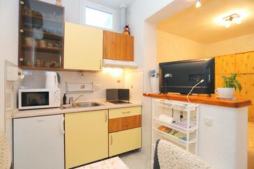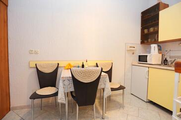 Ferienwohnung bietet Platz für 9 Gäste. Die Betten sind in Schlafzimmern, die es 3 gibt, innerhalb einer Gesamtfläche von 70m2, angeordnet. Die Gäste haben eine eigene Terrasse zur Verfügung, auf der sie in warmen Sommernächten genießen können. Das Apartment bietet Meerblick. Es ist erlaubt, Speisen auf dem Gemeinschafts-Grill vorzubereiten. In der Unterkunftseinheit besteht die Möglichkeit des Mitbringens von Haustieren gegen Aufpreis.