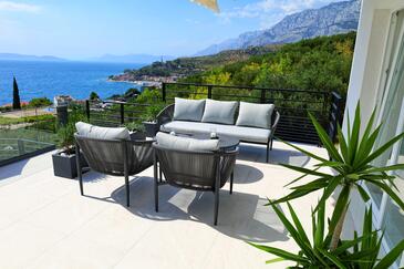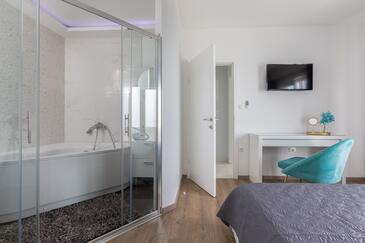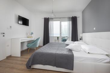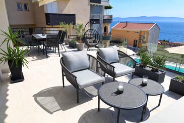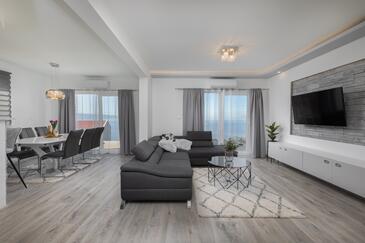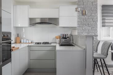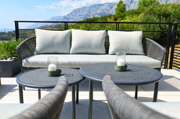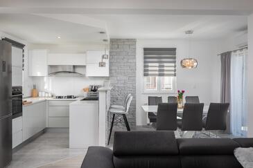 Haus bietet Platz für 6 Gäste. Die Betten sind in Schlafzimmern, die es 2 gibt, und in Wohnzimmer, innerhalb einer Gesamtfläche von 100m2, angeordnet. Die Gäste haben eine eigene Terrasse zur Verfügung, auf der sie in warmen Sommernächten genießen können. Das Haus bietet Meerblick. Für vollen Genuss und Entspannung gibt es einen privaten Grill für Gäste dieser Unterkunft. Während ihres Aufenthalts können sich Gäste im privaten Schwimmbad entspannen. In der Unterkunftseinheit besteht die Möglichkeit des Mitbringens von Haustieren gegen Aufpreis.