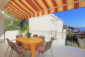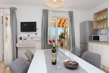 Ferienwohnung bietet Platz für 4 Gäste. Die Betten sind in Schlafzimmern, die es 1 gibt, und in Wohnzimmer, innerhalb einer Gesamtfläche von 31m2, angeordnet. Die Gäste haben eine eigene Terrasse zur Verfügung, auf der sie in warmen Sommernächten genießen können. Das Apartment bietet Meerblick. Es ist erlaubt, Speisen auf dem Gemeinschafts-Grill vorzubereiten.