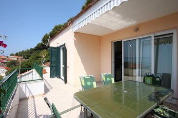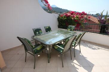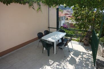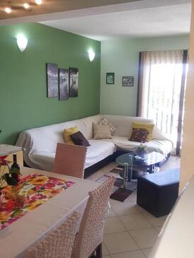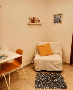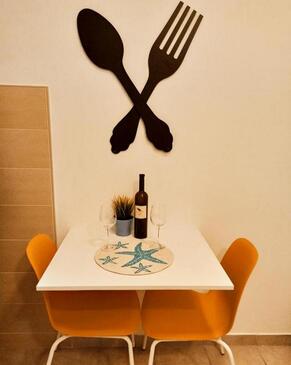 Ferienwohnung bietet Platz für 8 Gäste. Die Betten sind in Schlafzimmern, die es 3 gibt, und in Wohnzimmer, innerhalb einer Gesamtfläche von 68m2, angeordnet. Die Gäste haben eine eigene Terrasse zur Verfügung, auf der sie in warmen Sommernächten genießen können. Das Apartment bietet Meerblick. Es ist erlaubt, Speisen auf dem Gemeinschafts-Grill vorzubereiten.