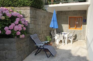 Ferienwohnung bietet Platz für 5 Gäste. Die Betten sind in Schlafzimmern, die es 2 gibt, und in Wohnzimmer, innerhalb einer Gesamtfläche von 55m2, angeordnet. Die Gäste haben eine eigene Terrasse zur Verfügung, auf der sie in warmen Sommernächten genießen können. Das Apartment bietet Meerblick. Es ist erlaubt, Speisen auf dem Gemeinschafts-Grill vorzubereiten. In der Unterkunftseinheit besteht die Möglichkeit des Mitbringens von Haustieren gegen Aufpreis.