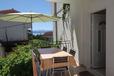 Ferienwohnung bietet Platz für 6 Gäste. Die Betten sind in Schlafzimmern, die es 2 gibt, und in Wohnzimmer, innerhalb einer Gesamtfläche von 68m2, angeordnet. Die Gäste haben eine eigene Terrasse zur Verfügung, auf der sie in warmen Sommernächten genießen können. Das Apartment bietet Meerblick. Es ist erlaubt, Speisen auf dem Gemeinschafts-Grill vorzubereiten.