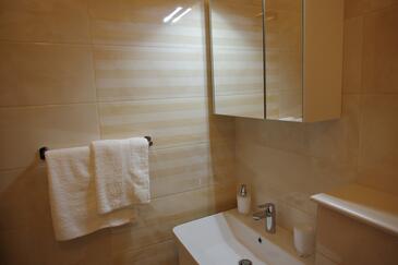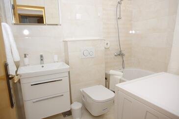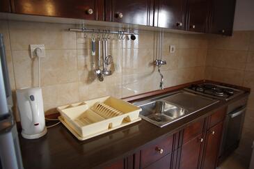 Ferienwohnung bietet Platz für 4 Gäste. Die Betten sind in Schlafzimmern, die es 2 gibt, innerhalb einer Gesamtfläche von 46m2, angeordnet. Die Gäste haben eine eigene Terrasse zur Verfügung, auf der sie in warmen Sommernächten genießen können. Das Apartment bietet Meerblick. Es ist erlaubt, Speisen auf dem Gemeinschafts-Grill vorzubereiten.