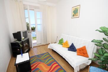 Ferienwohnung bietet Platz für 4 Gäste. Die Betten sind in Schlafzimmern, die es 2 gibt, innerhalb einer Gesamtfläche von 48m2, angeordnet. Die Gäste haben einen eigenen Balkon zur Verfügung, auf der sie in warmen Sommernächten genießen können. Das Apartment bietet Meerblick. Es ist erlaubt, Speisen auf dem Gemeinschafts-Grill vorzubereiten. In der Unterkunftseinheit besteht die Möglichkeit des Mitbringens von Haustieren gegen Aufpreis.