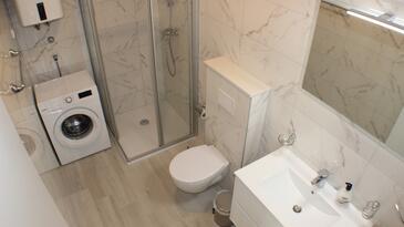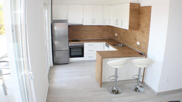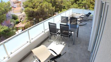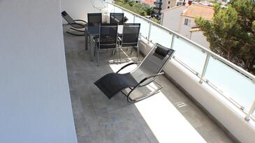 Ferienwohnung bietet Platz für 6 Gäste. Die Betten sind in Schlafzimmern, die es 2 gibt, und in Wohnzimmer, innerhalb einer Gesamtfläche von 55m2, angeordnet. Die Gäste haben eine eigene Terrasse zur Verfügung, auf der sie in warmen Sommernächten genießen können.
