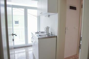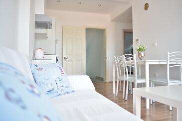 Ferienwohnung bietet Platz für 4 Gäste. Die Betten sind in Schlafzimmern, die es 2 gibt, innerhalb einer Gesamtfläche von 32m2, angeordnet. Die Gäste haben einen eigenen Balkon zur Verfügung, auf der sie in warmen Sommernächten genießen können. Das Apartment bietet Meerblick. Es ist erlaubt, Speisen auf dem Gemeinschafts-Grill vorzubereiten.