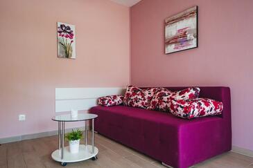 Ferienwohnung bietet Platz für 4 Gäste. Die Betten sind in Schlafzimmern, die es 1 gibt, und in Wohnzimmer, innerhalb einer Gesamtfläche von 29m2, angeordnet. Die Gäste haben einen eigenen Balkon zur Verfügung, auf der sie in warmen Sommernächten genießen können. Während ihres Aufenthalts können Gäste das gemeinsam zur Nutzung stehende Schwimmbad benutzen.
