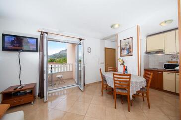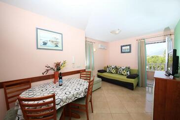 Ferienwohnung bietet Platz für 4 Gäste. Die Betten sind in Schlafzimmern, die es 1 gibt, und in Wohnzimmer, innerhalb einer Gesamtfläche von 33m2, angeordnet. Die Gäste haben einen eigenen Balkon zur Verfügung, auf der sie in warmen Sommernächten genießen können. Das Apartment bietet Meerblick. Es ist erlaubt, Speisen auf dem Gemeinschafts-Grill vorzubereiten.