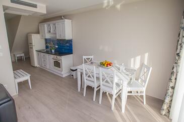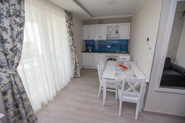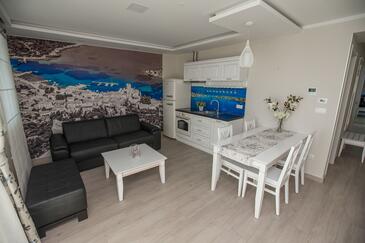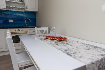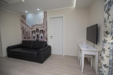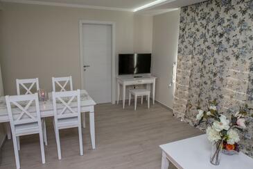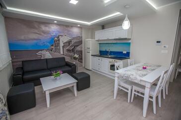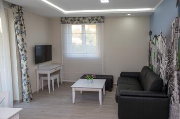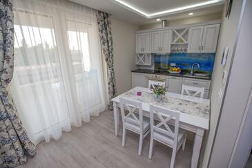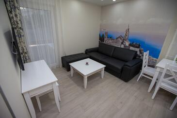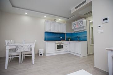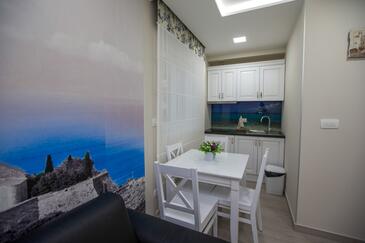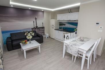 Ferienwohnung bietet Platz für 4 Gäste. Die Betten sind in Schlafzimmern, die es 1 gibt, und in Esszimmer, innerhalb einer Gesamtfläche von 32m2, angeordnet. Die Gäste haben eine eigene Terrasse zur Verfügung, auf der sie in warmen Sommernächten genießen können.