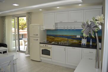 Ferienwohnung bietet Platz für 4 Gäste. Die Betten sind in Schlafzimmern, die es 1 gibt, und in Wohnzimmer, innerhalb einer Gesamtfläche von 27m2, angeordnet. Die Gäste haben eine eigene Terrasse zur Verfügung, auf der sie in warmen Sommernächten genießen können.
