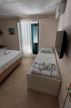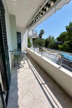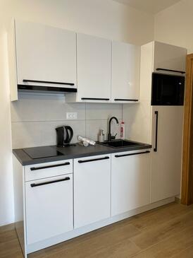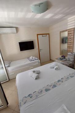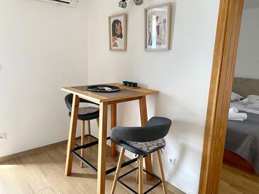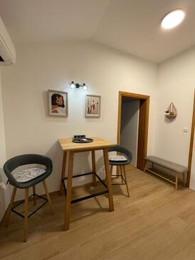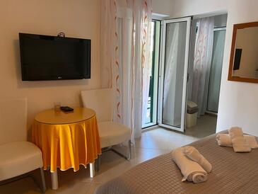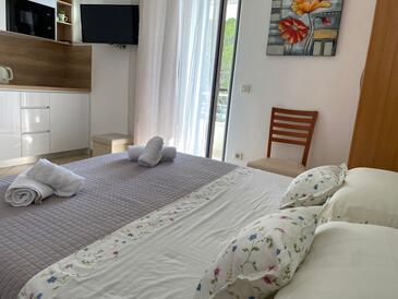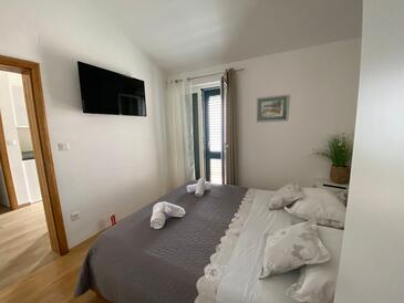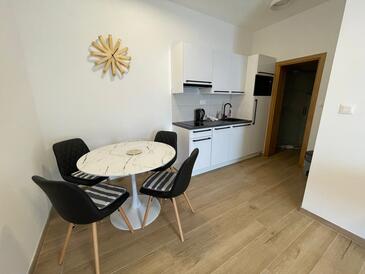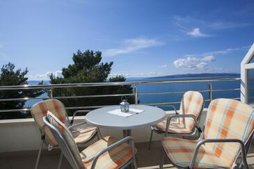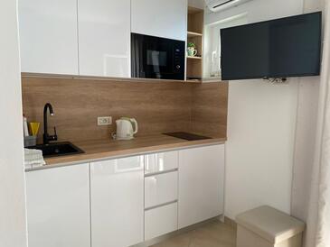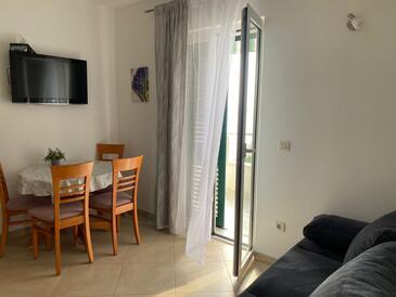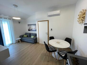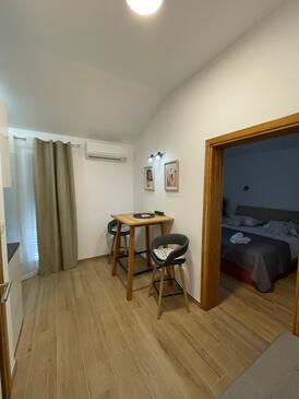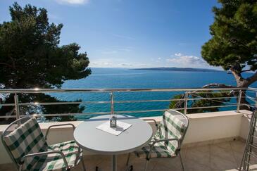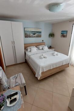 Ferienwohnung bietet Platz für 4 Gäste. Die Betten sind in Schlafzimmern, die es 1 gibt, und in Wohnzimmer, innerhalb einer Gesamtfläche von 30m2, angeordnet. Die Gäste haben eine eigene Terrasse zur Verfügung, auf der sie in warmen Sommernächten genießen können. Das Apartment bietet Meerblick. Es ist erlaubt, Speisen auf dem Gemeinschafts-Grill vorzubereiten.