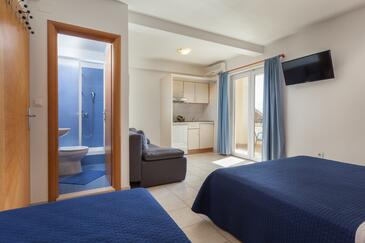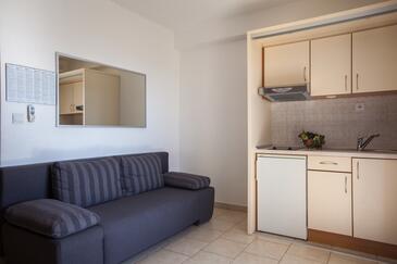 Ferienwohnung bietet Platz für 4 Gäste. Die Betten sind in Schlafzimmern, die es 1 gibt, und in Wohnzimmer, innerhalb einer Gesamtfläche von 30m2, angeordnet. Die Gäste haben eine eigene Terrasse zur Verfügung, auf der sie in warmen Sommernächten genießen können. Das Apartment bietet Meerblick.