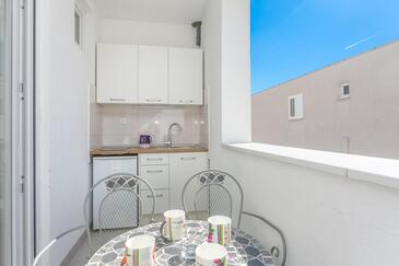 Studio bietet Platz für 4 Gäste. Die Betten sind in Schlafzimmern, die es 1 gibt, innerhalb einer Gesamtfläche von 22m2, angeordnet. Die Gäste haben eine eigene Terrasse zur Verfügung, auf der sie in warmen Sommernächten genießen können. Es ist erlaubt, Speisen auf dem Gemeinschafts-Grill vorzubereiten.