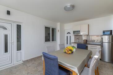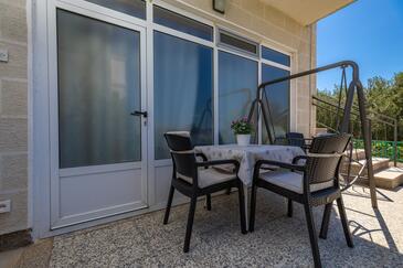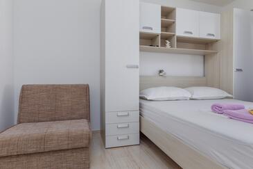 Ferienwohnung bietet Platz für 6 Gäste. Die Betten sind in Schlafzimmern, die es 2 gibt, innerhalb einer Gesamtfläche von 48m2, angeordnet. Die Gäste haben eine eigene Terrasse zur Verfügung, auf der sie in warmen Sommernächten genießen können. Das Apartment bietet Meerblick. Räume der gebuchten Unterkunftseinheit werden nicht in eine Ganze verbunden. Unterkunftseinheit hat Räume, die von dem Rest der Einheit abgetrennt werden.
